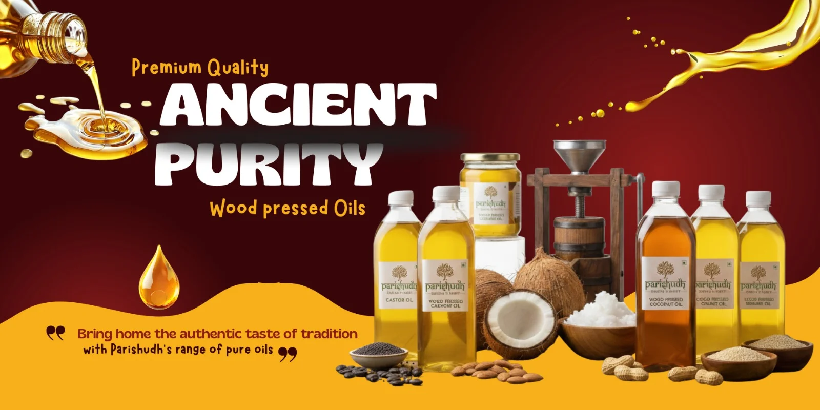 Cold-pressed oils made using wooden chekku methods that preserve natural nutrition, aroma, and taste — just like our grandparents did.